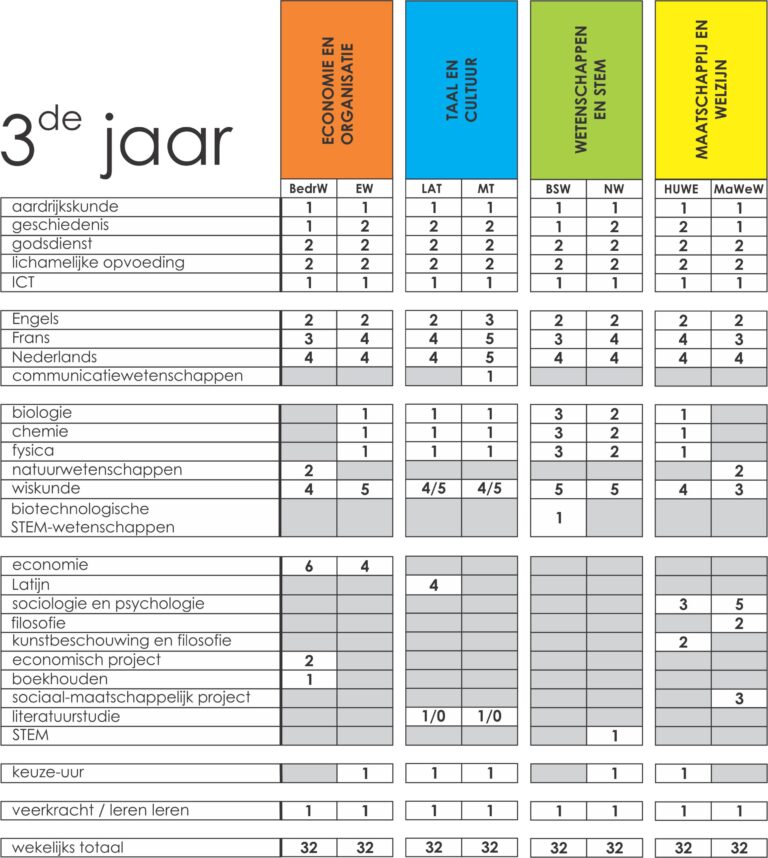 Legende studierichtingen: